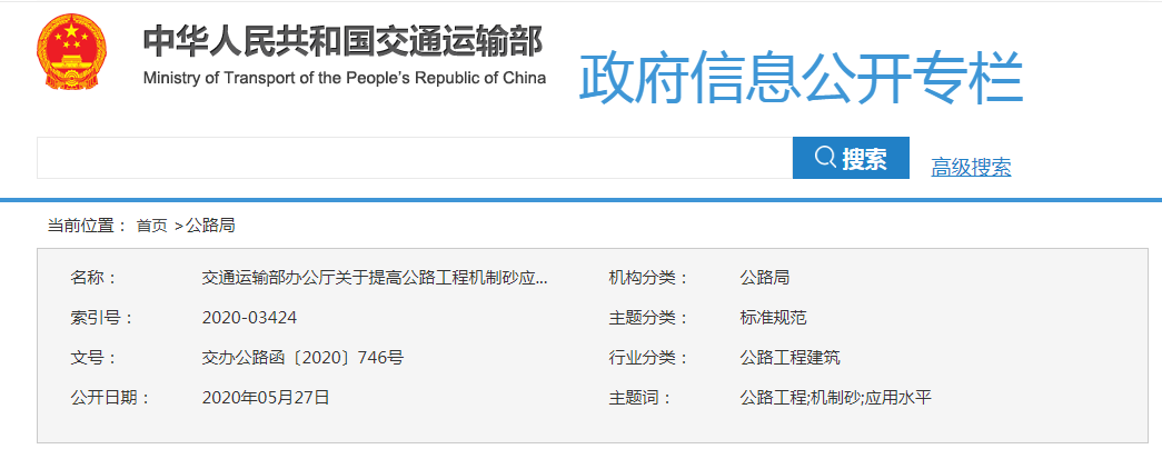 但是,今日機制砂行業(yè)迎來新的曙光,為解決河砂緊缺局面,交通運輸部發(fā)布《交通運輸部辦公廳關(guān)于提高公路工程機制砂應用水平的通知》,對機制砂石質(zhì)量給出具體參考標準,各地可結(jié)合實際情況在應用過程中制定實施細則,不斷加強機制砂生產(chǎn)與應用過程中的質(zhì)量管控,確保機制砂質(zhì)量。